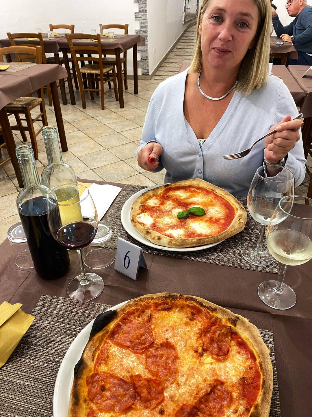 Es gab noch eine leckere Pizza und etwas Wein, bevor wir dann doch recht erschöpft ins Bett fielen.