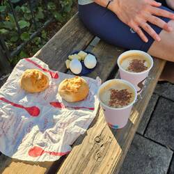 Radeln in die Grazer Altstadt & frühstücken dort mit einem Cappuccino to go & Essensresten aus dem Kühlschrank zuhause.