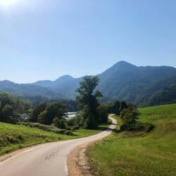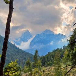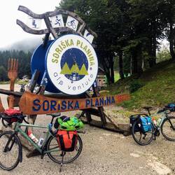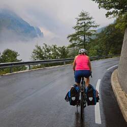 🗒️Haben gut geschlafen. Etwas tiefer als letzte Nacht. Beim Wildcamping bleibt wohl immer ein Ohr halb offen oder war es die Nähe zum Bahngleis und den vorbei fahrenden Zügen? Beim Aufstehen um 7:00 Uhr ist schon einiges los. Die Outdoor Menschen stehen früh auf. Frühstücken gemütlich vor unserem Zelt mit Blick auf die Soča. Unser Appetit ist wieder merklich größer. Kaum sind wir losgerollt, beginnt es leicht zu regnen. Aber Regenjacken ziehen wir nicht an, da es jetzt 1000 Höhenmeter auf 13km zu erklimmen gibt und dann wäre es zu heiss unter der Jacke. 9km mit 14 Prozent Steigung sind angeschrieben, es geht 26 Kehren hoch und 24 runter. Ist hart, aber wir kurbeln langsam immer höher. Bei Steffi läuft es heute besser, sie fand es gestern zu heiss. Markus hätte viel lieber Hitze und der Regen nervt ihn. Die Aussicht ist durch den Nebel auch weniger schön. Schade. Sind 2.5 Stunden unterwegs bis oben. Oben schnell ein Gipfelfoto und die nassen Sachen ausziehen, etwas Warmes plus Regenjacke anziehen und runter gehts. Die Kurven sind teilweise gepflastert, somit müssen wir vorsichtig bremsen. Das Panorama ist schön. Die Finger werden immer kälter beim Abfahren. Wir erreichen Kranjska Gora. Vom See aus kann man nochmals in die Berge zurück blicken. Das Wasser ist türkisblau. Durchgefroren suchen wir ein Restaurant. Am Pizzaofen kann man sich wärmen und die Pizza schmeckt auch fein. Jetzt kommt die Sonne wieder raus. Satt rollen wir weiter. Können endlich unsere Wäsche im Fahrtwind trocknen. Der Radweg Richtung Bled ist perfekt ausgebaut. Es geht immer noch weiter leicht bergab. Somit kommen wir schneller voran, wobei ein bisschen hoch ist auch wieder dabei. Die Landschaft sehr schön. Berge, Wald und der Fluss Save. Die Save kennen wir aus Ljubljana, dort waren wir baden. Heute ist uns nicht nach einem Bad, auch wenn es nach dem regnerischen Morgen jetzt wieder schön ist. In Bled genießen wir den Blick über den See und hoch zur Burg. Die Cafepause streichen wir, da es bereits wieder spät ist. Unser Ziel heute ist Bohinjska Bistrica. Wieder erwartet uns ein perfekter Radweg und nur noch wenige Höhenmeter, ganz ohne geht heute nicht. Am Camping angekommen heißt es, für nur eine Nacht müssen wir 20 Prozent mehr bezahlen und dann gibt es doch wieder 10 Prozent Rabatt, da wir kein Auto haben. Ist trotzdem der teuerste Platz bis jetzt mit 48 Euro. Sonst waren die Preise von 30-35 Euro. Und unsere erste Nacht sogar nur 20 Euro. Dafür sind heute die Duschen sehr schön mit viel Platz und genug Haken um Sachen aufzuhängen. Wir kochen noch 'unsere Biker Pasta' (Pasta mit Kokosmilch, zerdrückter Banane und Maiskörnern und mit Curry gewürzt), so lecker. Zum Dessert gibt es Cremeschnitte. Überlegen noch wegen unseren Plänen für morgen, es soll leider regnen. Aber jetzt erst mal schlafen. Gute Nacht.