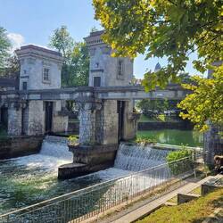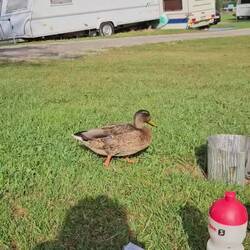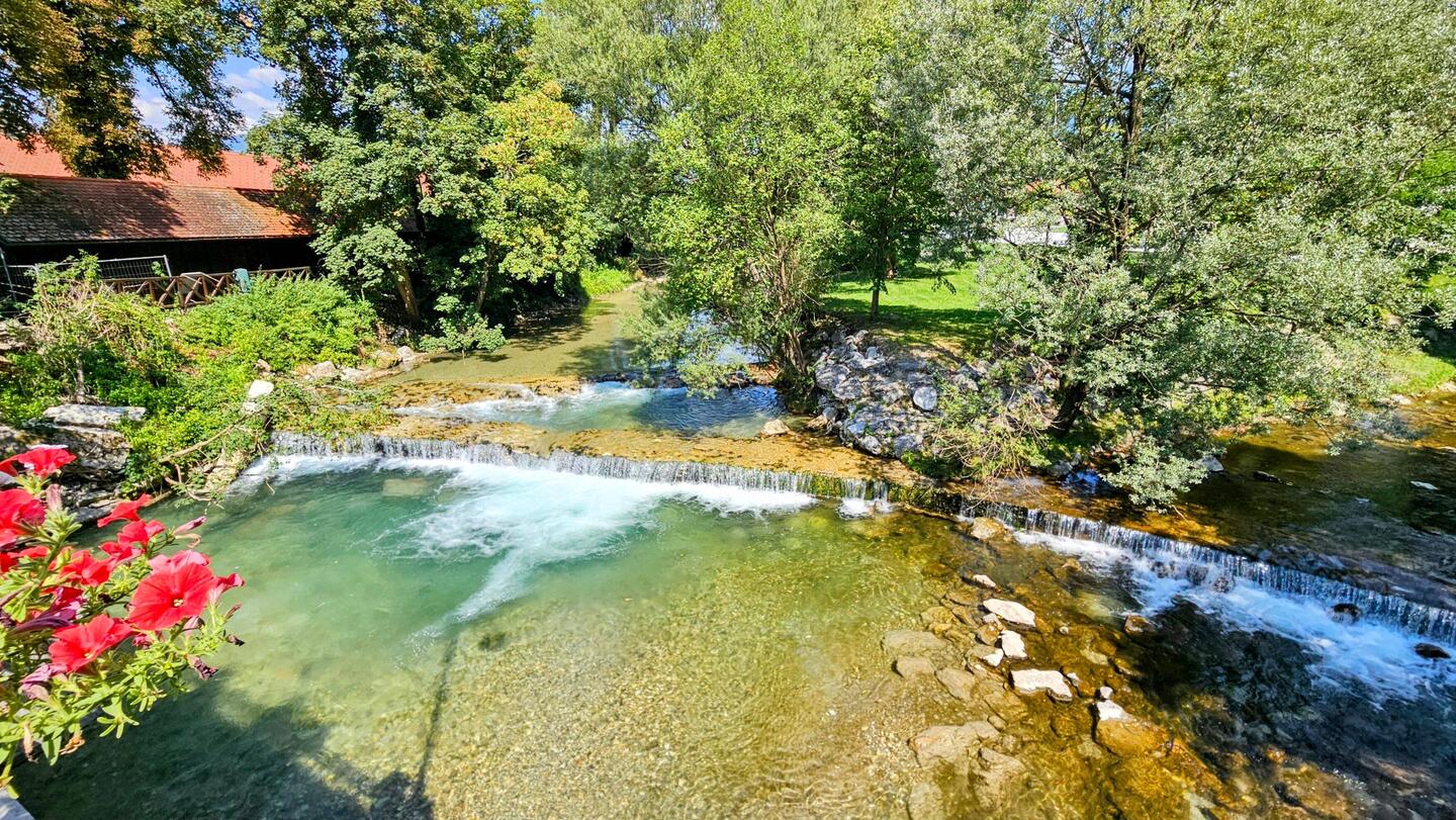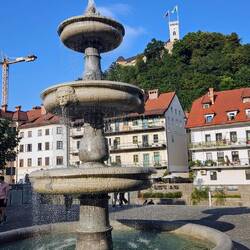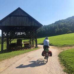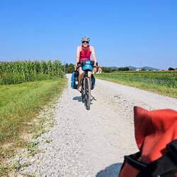 Die Fahrt nach Ljubljana verläuft dann grösstenteils auf sehr schönen Velowegen. Etwas nördlich der Stadt erkunden wir am Fluss Sava einen potentiellen Platz zum wild Zelten, aber irgendwie ist unsere Lust auf Grossstadt grad ziemlich getrübt. Wir nutzen die Gelegenheit zum Abkühlen & hüpfen kurz in die Sava. Ah, das tut gut! Auch heute sind nämlich wieder 34°C angesagt. Wir fühlen uns beide eher kraftlos, keine Power in den Beinen. Morgen Samstag nochmals so hohe Temperaturen, danach solls aber etwas kühler werden. Endlich in Ljubljana drehen wir fahrend oder Velo stossend ein paar Runden. Schöne Gassen, zahlreiche Restaurants & Cafes, der Fluss Ljubljanica & über allem thront leicht erhöht das Schloss. Sehr hübsch, aber mit den vollgepackten Velos & in unserem verschwitzten Zustand sind wir nicht mehr wirklich in Stadt-Stimmung. Essen was Kleines & entschliessen uns, noch etwa 35km zum nächsten Camping zu fahren. Der Weg dorthin auch oft auf Velostreifen, aber dank dauerndem Trottoir runter & wieder rauf, Verlauf auf der einen, dann wieder anderen Strassenseite eher nervig. Um etwa 2015 erreichen wir unser Ziel dann doch noch. Netter Empfang, schöne Zeltwiese, nur spärlich gefüllt. Schnell Zelt aufstellen & einräumen, duschen & dann im Restaurant eine Kleinigkeit essen (um die Zeit leider nur noch Pizzen verfügbar, für die frischen Salate ist es zu spät). Unser Hunger aber recht reduziert. Für ein kleines Glace reichts aber nach einer gemeinsamen Pizza trotzdem auch noch😋. Danach schlafen wir dann bald ein.