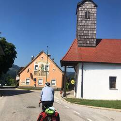 Zuerst geht es zum Wörthersee. Vorbei an der Kirche von Maria Wörth nach Velden. Dort sind viele Menschen unterwegs. Hier wurde die Serie 'Ein Schloss am Wörthersee' mit Roy Black gedreht. Sehr schicker Ort mit vielen Bars, Hotels und Restaurants. Weiter gehts am See entlang bis nach Pörtschach. Hier biegen wir ab, es geht den Berg hoch nach Moosburg und weiter nach Feldkirchen. Für 7km gehts einer größeren Straße entlang. Hier geben wir Gas, nochmal auspowern. Sonst sind es heute schöne kleine Straßen und viele Radwege. In Feldkirchen machen wir Cafepause. Der Himmel verdunkelt sich, es fängt an zu nieseln. Fahren trotzdem weiter Richtung Ossiacher See, am Bleistätter Moor vorbei und dann dem See entlang. Der Regen wird heftiger, wir düsen weiter und werden ziemlich nass, sehen aber bereits wieder die Sonne. Wenig später können wir dann wieder trocknen. Kurz vor unserem Ziel kommt nochmal ein sehr heftiger Regen, wir können uns gerade noch in ein Bushäuschen retten. Ein kurzer Snack und dann im Trockenen noch 2 Kilometer zum Camping am Vassacher See. Sind bereits um 16 Uhr im Ziel - sehr früh für uns. Hier der perfekte freundliche Empfang. Mit Auskunft wo was ist, WLAN Passwort, extra Zeltbereich, Aufenthaltsraum, Sitzgelegenheiten und sehr modernen Sanitäranlagen und das zu einem vernünftigen Preis von 30 Euro. Fühlen uns wohl. Nehmen ein kurzes Bad im See, schön warmes Wasser, duschen und rollen nach Villach. Schlendern durch die Stadt und genießen unseren letzten Abend mit Essen gehen, Eisdiele und Schlummertrunk. Zufrieden mit schönen Erinnerungen an die letzten 11 Tage kuscheln wir uns in die Schlafsäcke.Læs mere