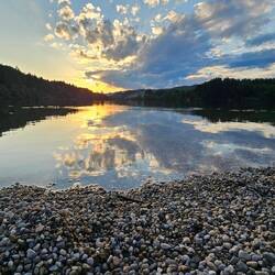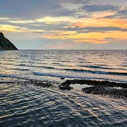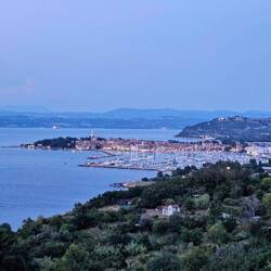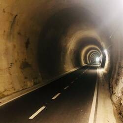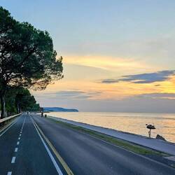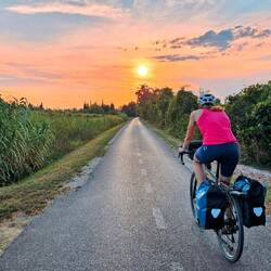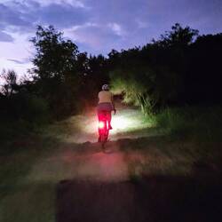 Kurz vor Sonnenuntergang machen wir uns auf die Heimfahrt. Planen auf Komoot eine andere Route als auf der Hinfahrt & kreieren eine mit möglichst wenig Höhenmetern. Diese wird dann aber sehr abenteuerlich, führt im Halbdunkel auf groben Steinplattenwegen direkt dem Wasser entlang, mit 18% Steigung einen Hügel hinauf, dann weiter durch Salzsalinen & gegen Ende, inzwischen mit Hilfe der Stirnlampen, auf Wurzelwegen durch den Wald. Wir fragen uns, was hier alles als Veloweg bezeichnet wird. Die Antwort darauf erübrigt sich später, als Markus realisiert, dass er auf Komoot fälschlicherweise eine 'Wanderung' statt eine 'Velotour' geplant hat🙈... Was solls, wir haben den Tag genossen & diese Heimfahrt hat daran nichts geändert😃.