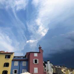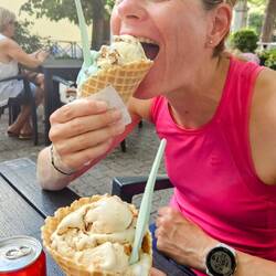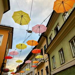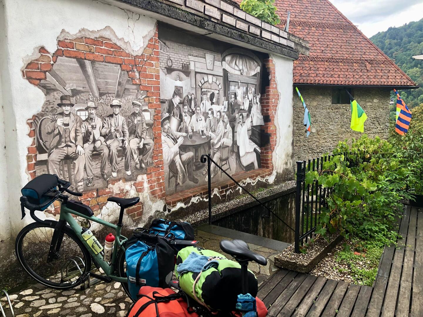 Der Regen hat sich verzogen & so nehmen wir die letzten 12km in Angriff. Auf halber Distanz fällt Steffi auf, dass ihr Stirnband immer noch zum Trocknen an der Garderobe im Café hängt. Da die heutige Etappe sowieso kürzer als üblich ausfällt, ist Markus ein dankbarer Abnehmer von ein paar Zusatzkilometern & düst nochmals zurück, während Steffi schon nach Kranj fährt & unsere Suite (ca. 45m², 2-stöckig, mit Schrägdach😍) in Beschlag nimmt. Wir breiten alle nassen Sachen in der Wohnung aus, duschen & begeben uns zu Fuss in die hübsche Altstadt. Feine Lasagne, Pizza & Limoncello Spritz runden den Tag ab.