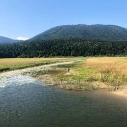 🗒️Steffi ist heute früh fit und steht schon mal alleine auf. Markus bekommt dann warmen Café ins Zelt geliefert, während er noch fleißig am Pingu schreiben ist. Heute gibt es Frühstück im Schatten, wir haben aus der Hitze der letzten Tage gelernt. Fühlen uns heute beide frischer und freuen uns auf den Tag. Die ersten Kilometer wirken wie im Schwarzwald, Tannen, kleine Straßen, kein Verkehr und hügelig. Es sind viele Velofahrer unterwegs heute am Samstag. Nach 30 Kilometern kommen wir ins Naturschutzgebiet des Cerknicas Sees (Cerkniško jezero). Jetzt im Sommer ist dieser See fast ausgetrocknet bis auf ein paar Flüsse, wenn er gefüllt ist fasst er eine Fläche von 27 Quadratkilometern und ist dabei maximal 5-10m tief. Dann ist er der größte See Sloweniens. Wir fahren mitten durch. Die Weite ist schön. Ein Vogelschwarm steigt auf, tolle Stimmung. Der Weg ist geschottert. Bauern mähen das Schilf. Nach dem See gibt es ein kurzes Picknick. Jetzt geht es hoch in den Wald. Ein Schild warnt vor Bären. Steffi hat etwas Angst. Wir fahren nebeneinander und quatschen, so hört uns der Bär. Es soll 1000 Bären geben in Slowenien, aber wir sehen keinen. Gut so findet Steffi, aber auch schade findet Markus. Jetzt noch am ausgetrockneten Palško jezero vorbei und weiter auf Schotter. Am Ende liegen gute 30 Kilometer Schotterweg hoch und runter hinter uns. Wir sind eingestaubt und durchgeschüttelt. In Pivka stürmen wir den Supermarkt. Direkt davor stärken wir uns. So haben wir Energie für die nächsten Höhenmeter. Wieder eine kleine Straße mit wenig Verkehr, tollen Ausblicken und jetzt schon mediterraner Natur. Das Meer kommt näher. Nach dem Bergauf kommt das Bergab. Auf einer schönen Abfahrt sausen wir nach Italien. In der Gelateria gibt es ein großes Glace. Jetzt ist es nicht mehr weit. Es geht über den Parenzana Radweg, eine alte Eisenbahnstrecke vorbei an Triest wieder nach Slowenien. Unsere letzten Kilometer für heute gehen direkt am Meer entlang. An einem Kanal können wir eine Bisamrattenfamilie beobachten. Sehen niedlich aus. Zum Camping Belvedere gehts nochmal steil hoch. Wir werden mit einem Blick auf die Stadt Izola belohnt. Sind sehr müde und kaputt als wir ankommen. Stellen unser Zelt unter einem Olivenbaum auf, gönnen uns eine Dusche und schlafen schnell ein mit vielen schönen Bildern im Kopf. Morgen ist dann Ruhetag 🙂.Læs mere