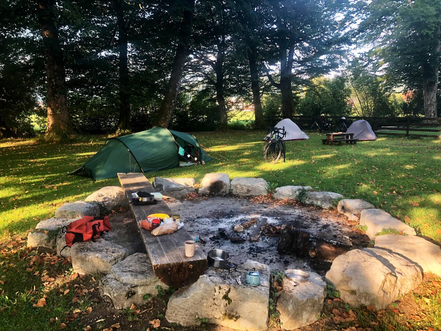Das funktioniert auch tipptopp, erst nachdem wir Zelt abgebaut & Saccochen gepackt haben, tauchen die ersten Velofahrer auf, wir erwartet interessiert sich keiner dafür, ob wir hier übernachtet haben. Wir frühstücken noch, dann fahren auch wir los.
