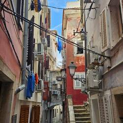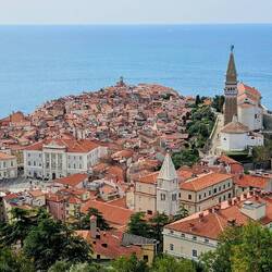 'Sightseeing' heisst heute mal zu Fuss durch die Gässchen von Piran spazieren, die Stadtmauer & mehrere überbliebene Türme mit zahlreichen engen Treppenstufen erklimmen & die Aussicht auf Stadt & aufs Meer geniessen. Später auch noch zur Kathedrale Sankt Georg mit dem an Venedig nachempfundenen Glockenturm. Sehr hübsches Städtchen! Starken italienischen Einschlag, schliesslich stand Piran vom 13. bis 17. Jahrhundert auch unter venezianischer Herrschaft.