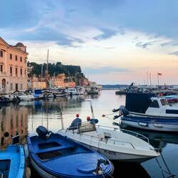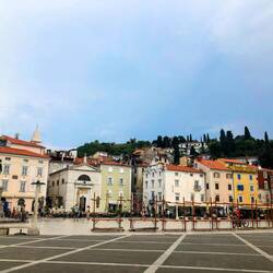 Nachdem wir gestern den südlichsten Punkt & auch die einzige Küste dieser Ferien erreicht haben, gibts hier heute einen Ruhetag. Mit Ausschlafen ist aber nix, bereits kurz nach 7 Uhr wirds uns im Zelt zu warm & wir müssen nach draussen fliehen. Frühstück vor dem Zelt, kurze Planung & dann fahren wir mit den Velos nach Piran. Stellen diese auf dem grossen Stadtplatz Tartini Plaza ab & bewegen uns bis abends zu Fuss. Unsere Hintern wissen dies auch mal zu schätzen.