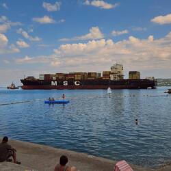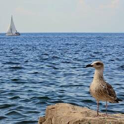 'Baden' machen wir gleich zweimal: Piran ist eine Halbinsel & der ganze Uferbereich ist eine grosse Fussgängerzone. Überall hat's Einstiegsmöglichkeiten ins Wasser, an mehreren Stellen sieht man (vermutlich) sowohl Locals als auch Touristen, die ihre Handtücher auf den Steinplatten ausbreiten oder Liegestühle aufstellen/mieten & den Sommer geniessen. Wirkt auf uns aber sehr locker, entspannt, kein Massen- oder Overtourismus. Selbst wenn es heute sicher nicht grad leer ist, wirkt es keineswegs überlaufen oder 'billig'. Gefällt uns gut! & weil es eben trotz leichtem Temperaturrückgang immer noch etwa 30°C warm ist, bauen wir gleich zwei Badestopps in unseren Tag ein.