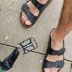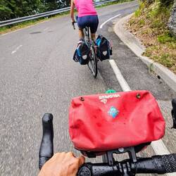 Nach den bisherigen Tagen in unseren 'luftigen Veloschuhen' (sprich barfuss & Tevas für Steffi bzw. Birkenstock für Markus🩴) entscheiden wir uns heute angesichts des Wetters & der Höhenmeter wieder für Socken & Joggingschuhe. Komfortabler so, aber die luftige & unkonforme Freistilvariante hat halt auch ihren Reiz😉.