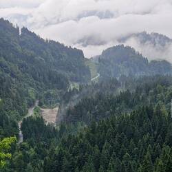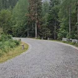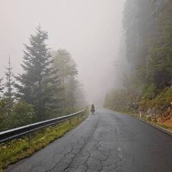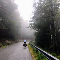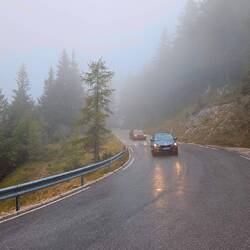 Auf 13km erklimmen wir etwa 800 Höhenmeter auf den Bohinjska Pass. Wenig Verkehr, 11km trocken & auf den letzten 2km einsetzender leichter Regen. Nach 1.5h erreichen wir die Passhöhe, ziehen ein trockenes Shirt & die Windjacke an & starten die Abfahrt. Diese wäre sehr schön & ziemlich flowig, infolge Regens müssen wir aber etwas mehr bremsen als gewünscht.