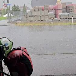 Blitze & Donnergrollen sind auf den nächsten Kilometern unsere Begleiter, allerdings in sicherer Distanz. Der Regen hingegen wird immer stärker, eigentlich würden wir schon längst mit der GoreTex-Regenjacke fahren, aber beim Packen liessen wir uns vom 14 Tage-Wetterbericht 'heiss & schön' blenden & entschieden uns, nur die dünne mehr-Wind-als-Regenjacke mitzunehmen - Anfängerfehler 🙈.