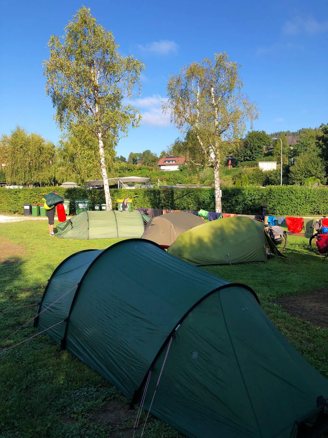 - Übernachtet haben wir 1x im Nachtzug, 1x in einem Bett (Kranj), 9x im Zelt auf einem Campingplatz & 1x im Zelt neben dem Veloweg.