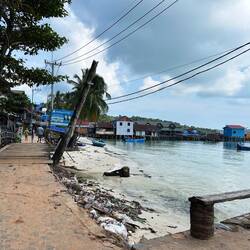 vehicle is practically off-roading and the air conditioning is non-existent. We survive and make it to the ferry station where air conditioning is blasting, but large groups of Brits keep opening the door. Luckily they all get on a different boat than the one taking us to Koh Rong. 😷😷