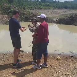Started our day hiking to a waterfall and rock scrambling around to find beer cans/trash. Was worried about snakes but was surprised when the only animal we ran into was a crab. A crab on a waterfall.