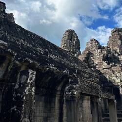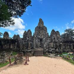 Started with Ta Prohm and Ta Keo. Ta Prohm is a 12th century Buddhist temple with forest and trees growing directly through the buildings. It was amazing to see the massive trees with their root structures intertwined in the stone. This is famous for being in the movie "Tomb Raider". Next was Ta Keo, known for its steep steps and impressive view. We scrambled up the uneven steps to get to the top, and obtain any amount of breeze we could. Today was a hot day so we took a few minutes at the top to appreciate the shade and fresh air.