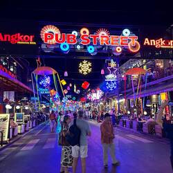 With our large tour of temples finished, we went back to the hostel for some rest and a beer. The pool at our hostel was a welcome treat after such a hot day. Kieran craved Mexican food and our path took us down the famous Pub Street; we got to see the street come alive with the various bars, clubs, and restaurants.