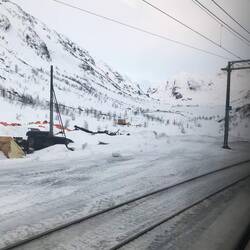 Today we took the 6 hour scenic train across Norway. The train chugged along little towns and started to climb into the mountains. We reach the peak and are technically on the highest elevated trainEn savoir plus