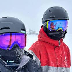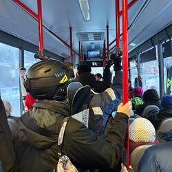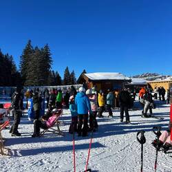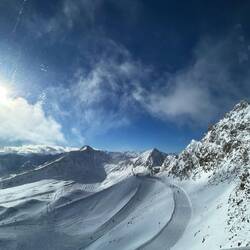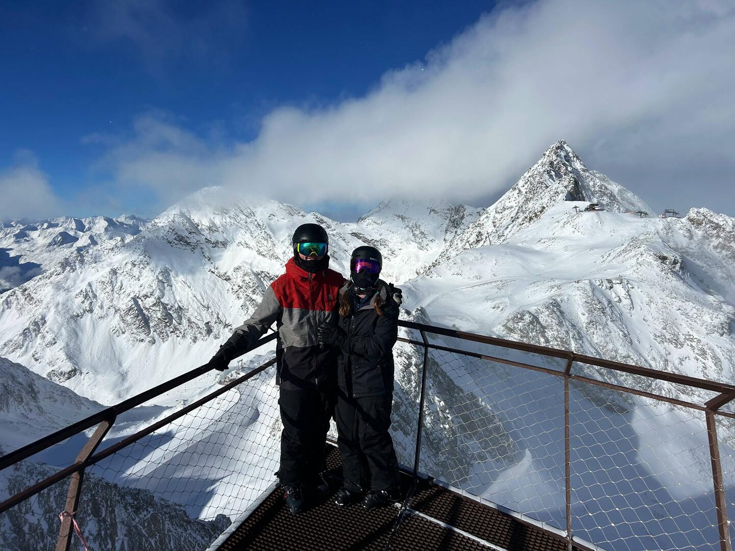 Well it’s our final ski day - and of course it’s going to snow in Tyrol the next few days after we leave. We decide to rent local ski equipment that handles the ice better. We take a free bus upLæs mere