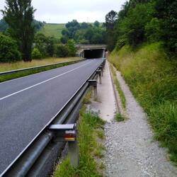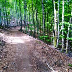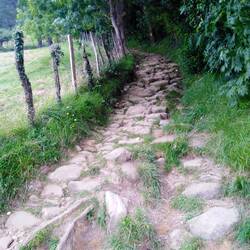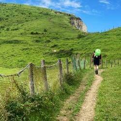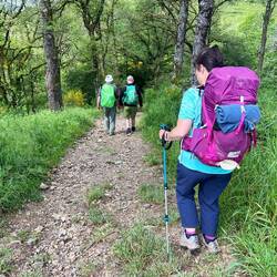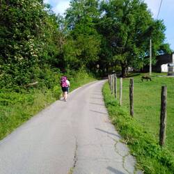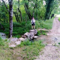 We continued along the route through forest tracks, up mountain tracks, down Roman razor roads, fenced in styles (interesting manoeuvres in rucksacks).