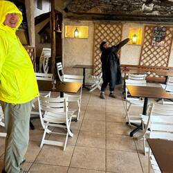 The lunch time crush was upon us and Simon grabbed the last available table. Unfortunately it started raining and we were at the end of the awning so raincoats and ponchos had to put in an appearance.