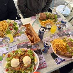 The meal last night at the campsite was a worry as we had ordered a burger- they asked how we wanted it cooked??!! I said well done and Simon said medium… this meant that Simon’s burger came back only half cooked 😩 however he was so hungry by this point he ate half of it but it tasted more and more like pet food, so he stopped eating it and felt quite angry 😡 who eats raw burgers other than the french?