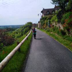 After a good sleep went down for a lovely breakfast in the charming dining room - a great selection including fruit salad, fresh croissants, cheese and ham. We left feeling buoyant and ready for a day on the road. A good job too as we had 24 km to get through.
