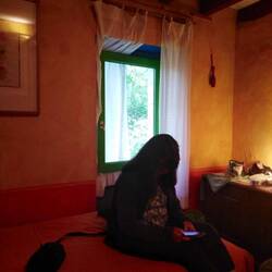 We then walked up the hill to today’s accommodation which is run by an ageing hippy. He has 2 rooms and we are to share with another pilgrim- so we have split into gender based rooms- as this will be easier to manage. We sit on the terrace having showered and relaxed.