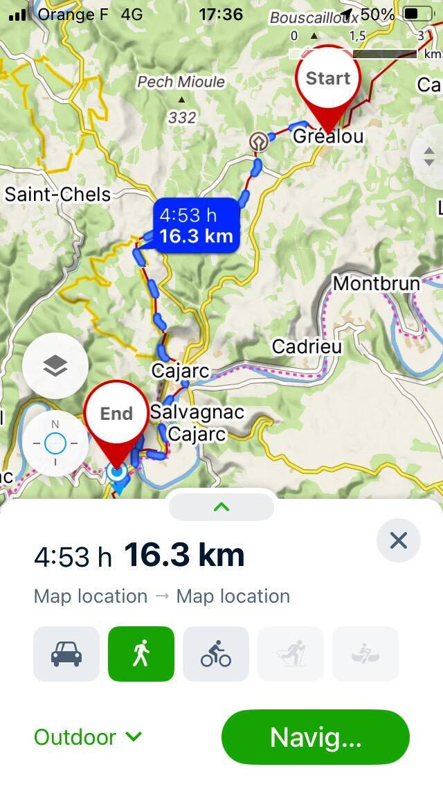 Our walk today was shorter than of late and started with a 4 km stretch alongside the River Lot. Then it revealed its teeth and the next 6km at least were the walk up the endless, very steep hill.