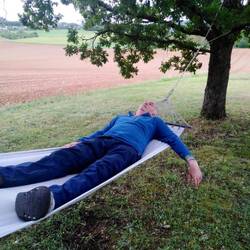 Had a good hour or so with him listening to his tales and philosophies, he had very gentle, spiritual eyes - probably a psycho 😆 - only joking. We sent him on his way with some provisions from the bakery and €10 - he was very happy and we had hugs all around before heading back to our convent for showers and chilling before bed in prep for 20 km tomorrow.もっと詳しく