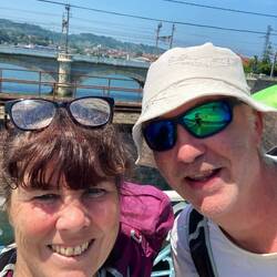 After putting bags into room and freshening up we hobbled into town while we had the energy. Sadly most places were shut til 7 except the bakery and local snack bar. We dined on paninis and offered to buy one for another pilgrim travelling with his dog. This turned out to be Roman, a 29 year old Czech Republic guy who said he sometimes walks up to 40 km a day😳 and lives outdoors relying on the kindness of The Way.