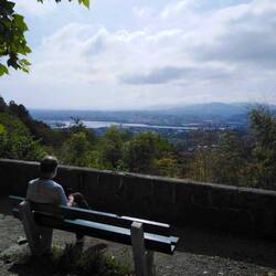 After breakfast we hit the road again. Today was overcast, muggy and with very little wind. We walked the first 3 km along the various large bays of the city. Then the inevitable uphill steep climb to the cliff tops. The way was through small lanes, woods and old Roman roads made of large uneven rocks. We met a steady stream of other pilgrims that the Plodicus picked his way past.