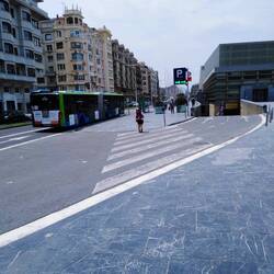 We got credentials stamped and bought tickets from a mad machine, then headed for what we hoped would be our bus stop! However here we were given conflicting information with regards to which side of the street our bus went from. Both bus shelters were constantly full of people and conflicting information with regards to the routes. We gave up waiting and went to find a taxi. The taxi brought us to the furthest regions of Bilbao! Full of Suburbs and blocks of apartments. We were dropped off in Bilbao’s equivalent of Castle Vale in Brum! With flags hanging from every other window in support of athletico Bilbao!
