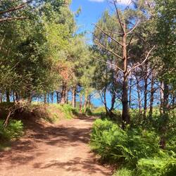 The route then took us up over the headland, quite a steep trek with vines and a big camping vibe. A little ant dog started chasing Simon and nipping at his heels, he resisted the temptation to squish it as could have caused an uproar!!
