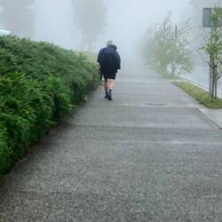 We tracked through the familiar eucalyptus forests, market gardens and asphalt. Hard to judge things due to the poor visibility!!