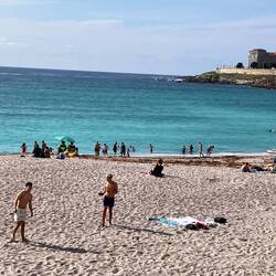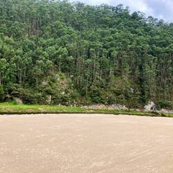 La Franca beach is a dramatic scene in its own right with a lively sea and a steep headland full of eucalyptus trees.