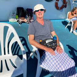 We explored the boat and enjoyed time on the top deck in the sunshine with a couple of sun downers before heading for some food in the restaurant.