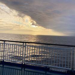 Mary got up early to try and catch something of the sunrise, however all the decks were being hosed down 💦 so a quick pic and off again.