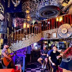 Wir finden eine relativ leere Bar, bestellen uns ein eiskaltes Bier, mit dem wir noch mal auf den Geburtstag anstoßen, lauschen der Band und beobachten die anderen Gäste in ihren Cowboystiefeln ☺️. Die Stimmung ist super und als langsam die Sonne untergeht ziehen wir weiter. Ich muss zwischendrin zum Auto zurück, um mir einen Pulli zu holen, obwohl draußen noch locker 30 Grad herrschen. Die Bars und Restaurants sind aber so dermaßen runtergekühlt, dass ich jedes Mal nach kurzer Zeit mit einer Gänsehaut da sitze 🥶 (gleiches gilt im Übrigen auch regelmäßig für die Supermärkte hier). Den anderen Leuten scheint das allerdings nichts auszumachen 🤷🏻♀️, ich denke aber, man übertreibt es hier ein wenig 😅🙈.