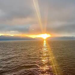Am nächsten Morgen können wir noch den schönen Sonnenaufgang beobachten, bevor wir in den Hafen von Puerto Montt ein- und kurz darauf und von Board fahren.