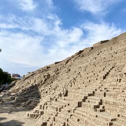 An unserem vorletzten Tag besuchen wir das Huaca Pucllana Museo de Sitio, wo wir die Überreste einer aus Lehm und Ton bestehenden Pyramide mitten in Miraflores besichtigen. Die Pyramide diente als wichtiges zeremonielles und administratives Zentrum für die Förderung der Lima-Kultur , einer Gesellschaft, die sich zwischen 200 und 700 n. Chr. an der peruanischen Zentralküste entwickelte.