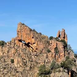 Für 122km haben wir 3,5 Std. gebraucht. Durch die Enge der Calanche und über mehrere weitere kleine Straßen, bis hierher. Der CP ist sehr einfach und die Zufahrt auch recht abenteuerlich.