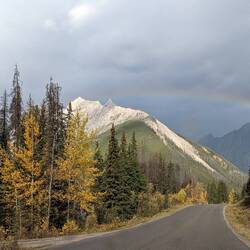 Luckily the weather turned better as we arrived back down and we had a few sun rays on the lake while we had our breakfast. On the way back to the highway we had some beautiful rainbows over the mountains and we even saw a bald eagle 🦅 at a rest stop! The last stop before getting back on the highway was at Maligne Canyon (actually a gorge).