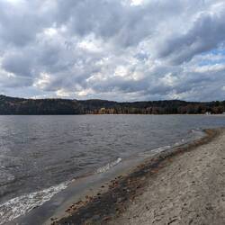 Waking up to the rain on our van we didn't feel like getting up until noon just being lazy and cosy. But eventually we made it to the car and the one hour drive to Lac Simon and a National Park where we wanted to enjoy our breakfast on the beach.