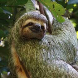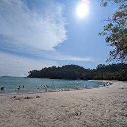 We drove a little bit back to the hostel and hotel area where Julia asked to join a tour. At the second spot we got an offer and accepted it for noon. We had more than two hours until it departed so we spent some time at the beach swimming and sun bathing and had a little breakfast. We entered the park at 12 and right after the entrance the tour guide spotted a sloth. There was a lot of wildlife all around: sloths, agoutis, three different species of monkeys, a basilisk and lots of big lizards and hermit crabs at the beaches. The highlight was definitely a sloth that was just about 8 metres away in a low hanging branch and extremely active. It was looking around all the time and watching us and the monkeys jumping around on nearby branches. A very special moment seeing this unique animal so close 🥰 Just a few minutes later Julia spotted an agouti at a small river bed foraging for food. The tour guide showed us overall 4 more sloths in the trees along the trails, one of them sleeping with it's baby 😍🦥 After we finished the guided tour we were left at the beautiful clear beaches of the Manuel Antonio National Park with a really fine sand. The water wasn't that clear and when Julia went snorkeling she couldn't see a lot. But we only had an hour left anyways before the beaches closed. Unfortunately some of the trails and facilities were closed in the park so we left shortly afterwards.