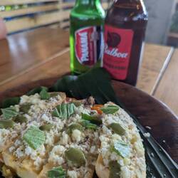 Our next stop was the town of Almirante which has not a lot to offer but is the gateway to the Bocas del Toro Archipelago. A huge archipelago with hundreds of little islands (and some large ones) offering something for everyone. So we parked Ruedi and hopped on a water taxi that brought us to the main island and the main town (which I'm still not sure how it's named - I think Bocas del Toro 😅). There we checked out two hostels and found a place to stay for the night. Then we explored a bit the town and informed us about the tours that are offered. Even though they start a little late (10 am) they had tours for exactly what we wanted: Snorkeling and beach 🏖️🥰 Afterwards we went to a restaurant that the receptionist in the hostel had recommended. We didn't check it out upfront, so it was a little surprise that it had a rather upscale menu. But it wasn't that expensive (compared to European standards) and it sounded very interesting as a Panamanian and Caribbean mix. And the food was absolutely delicious! Interestingly enough we had a banana differently prepared in each of the three courses. A well deserved treat!! ☺️