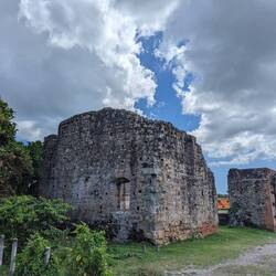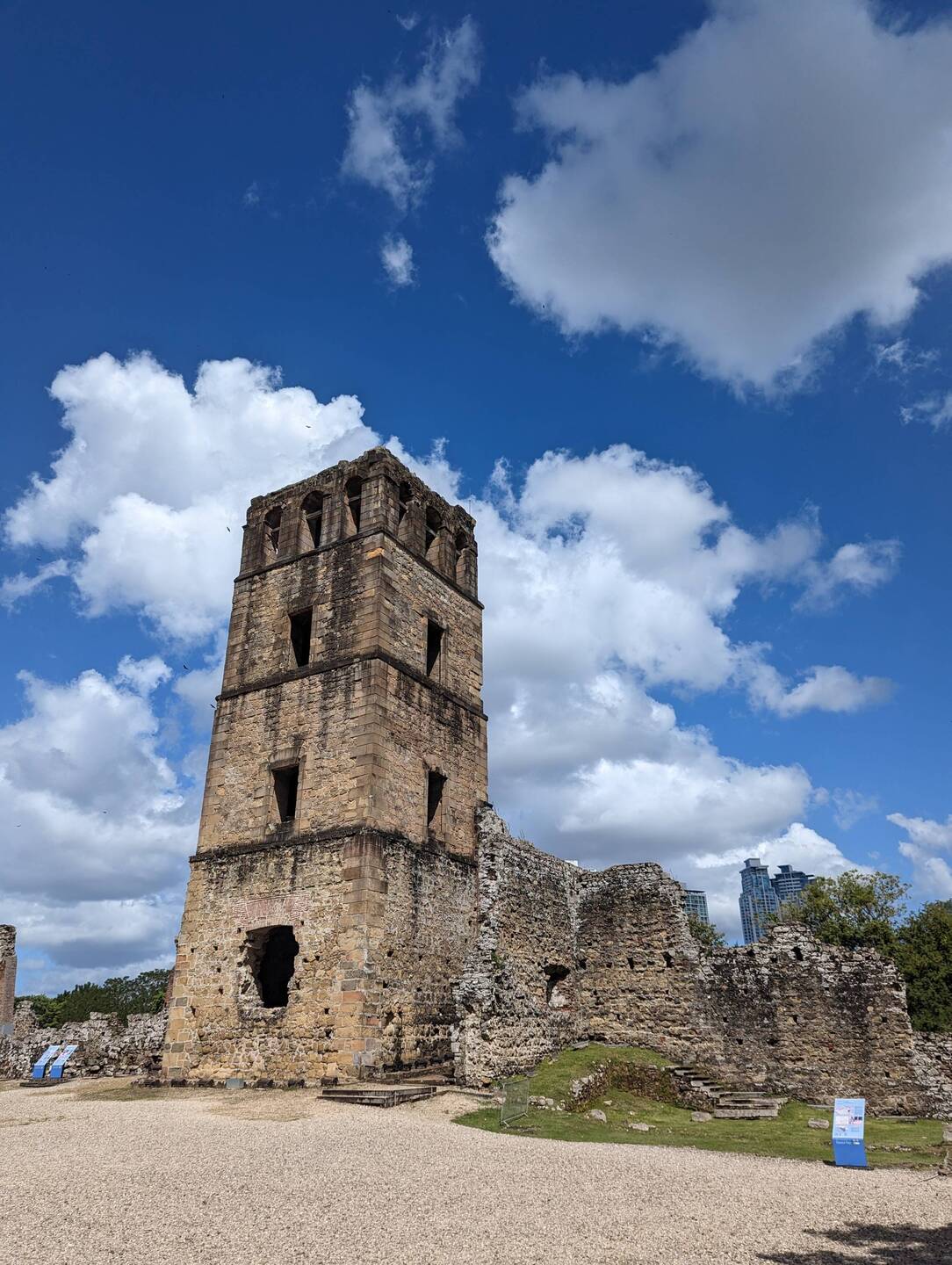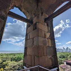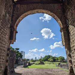 He started immediately with the paperwork while we went out for a walk to Panama Viejo, the initial settlement of Panama that was destroyed by the infamous pirate Henry Morgan. Nowadays there are just a few ruins left and a well renovated bell tower. We strolled through the huge area, read signs about the interesting history and watched iguanas scurry over the grass. It's a really pleasant area with a little museum and snack shop. We spent about two hours exploring the ruins before we returned to Ruedi. The paperwork was ready and we needed to go to a notary to get the stamp because I couldn't write the same signature as in my passport 🥴 It went pretty quick though and then we were done for today and drove to a viewpoint overlooking Casco Antiguo. Unfortunately there was no parking available so we just had the quick glimpses from the street.
