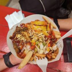 The flight left half an hour later but we still had plenty of time. It was a quite rough weather with some turbulences but nothing compared to the ones on the ship 😁 When we arrived in Buenos Aires the heat hit us hard, from a light snowstorm to 36 degrees Celsius 🌡️At the airport information we asked for luggage storage options and got a contact at the nearby bus terminal. This worked pretty well and we got rid of our big backpack for the next week. Next up we stopped at a little shop for some fries with chimichurri 😍 The next planned step was to transfer to the other airport EZE because by changing the flight we had also changed the arrival airport 😬🙈 This turned into a little fun trip with 3 different transportation methods, 2 hours of time and a pretty interesting sightseeing trip.