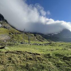 (MR) Die Schlechtwetterfront kam mit einem Tag Verspätung. Gut für uns. Heute wollten wir eh abreisen. Wir verließen die Lofoten und fuhren im Regen Richtung Narvik. Nur unterbrochen von einemLæs mere