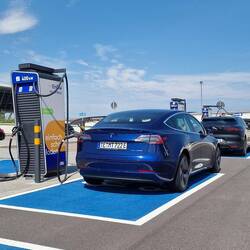 Ankunft am Flughafen Leipzig/Halle. Erster Eindruck: Die Sonne scheint, das Auto lädt.