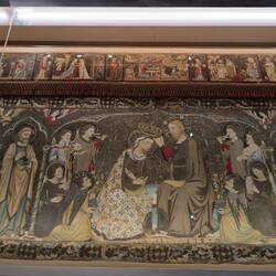 Foto 6: Krönung Mariens mit Heiligen und Engeln von Jacopo Cambi (1336)- Antependium (frontale Altardecke) des Hauptaltars der Kirche Santa Maria Novella. Die meisten gehen daran vorbei, es ist aber ein exzeptionelles, seltenes und gut erhaltenes Stück, welches im 14. Jh. geschätzt wurde und bekannt war.